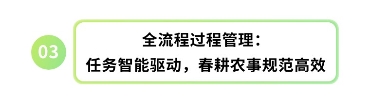 农事任务自动推送,关键节点不遗漏:系统根据作物生育期模型、品种特性及当地气候数据,将春耕播种、间苗定苗、去杂去劣、水肥管理等流程拆解为标准化操作单元,自动生成农事任务单,通过手机 APP、小程序实时推送给基地经理、农户。从 “人找事” 变为 “事找人”,确保春耕期间各项农事按时、按标准完成,关键节点零遗漏。